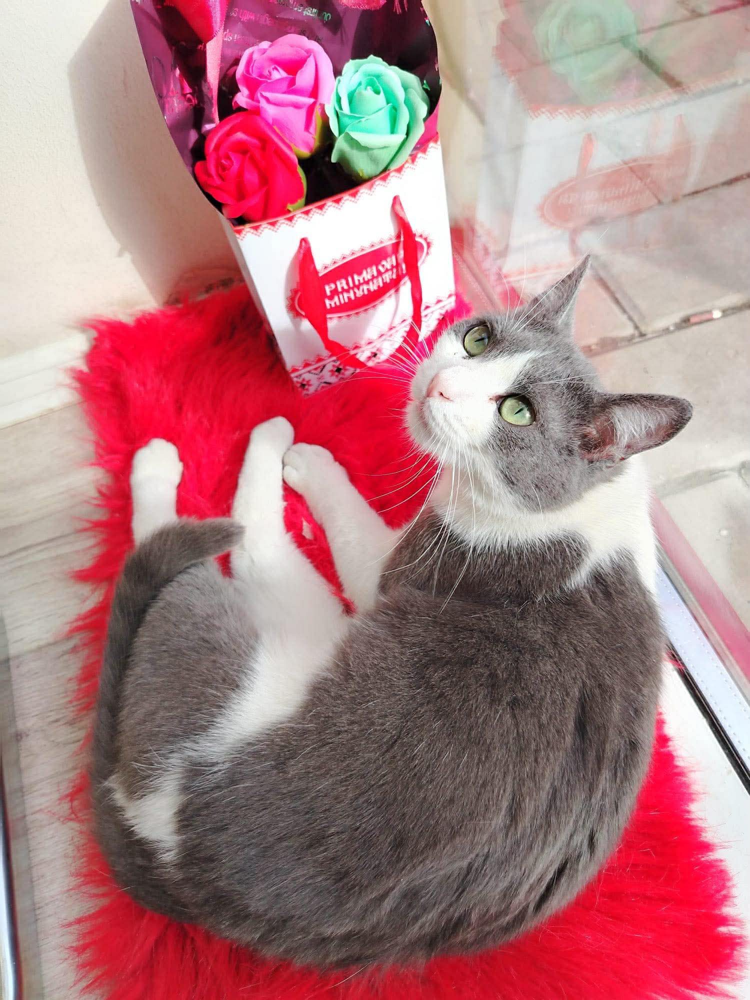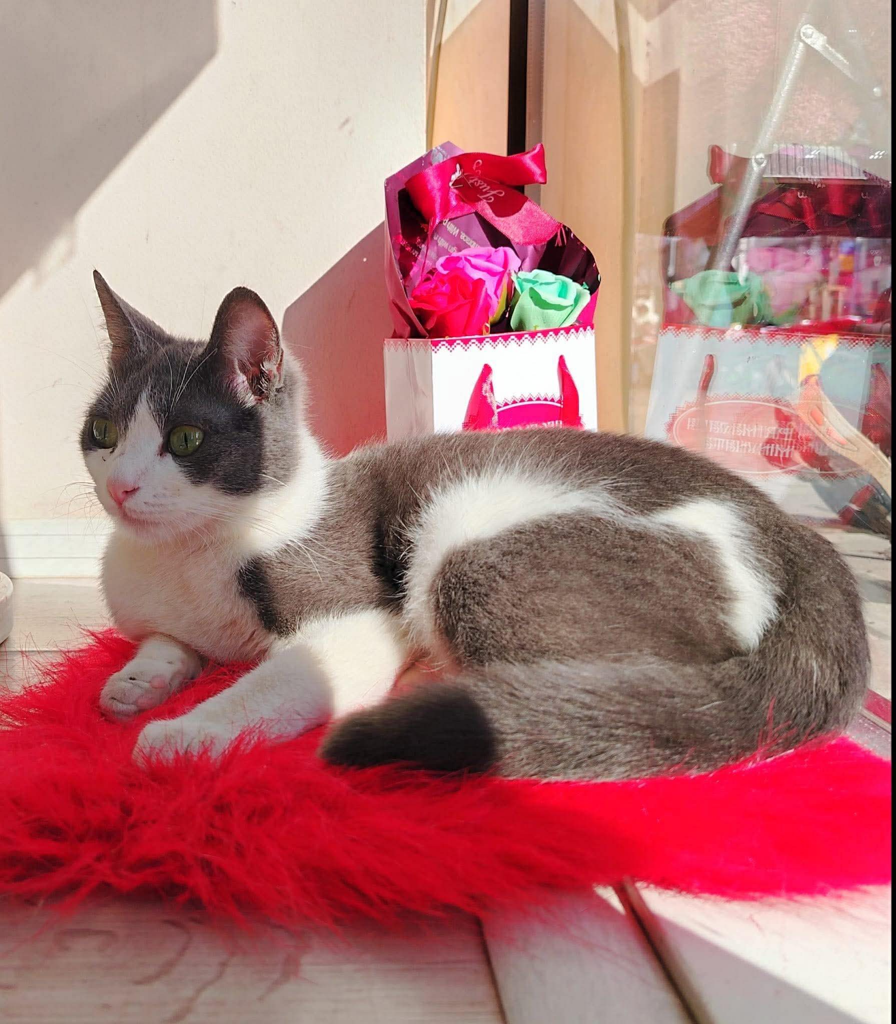 Ich wurde auf der Straße in der Nähe von Müllcontainern geboren, gemeinsam mit meinen Geschwistern. Eine liebe Tierschützerin fand mich dort, wir überlebten bis dorthin nur dank Essenszeiten von Menschen. Sie fütterte uns mit Katzenfutter und so langsam vertrauten wir ihr. Ich folgte ihr dann sogar bis in die Nähe ihres Ladens. Aber dadurch kam ich den Autos auch zu nahe, es war zu gefährlich. Sie nahm mich also mit in den Laden, in dem auch schon andere Katzen einen Unterschlupf bekommen haben. Meine neue Pflegemama machte sich Sorgen, dass die anderen mich nicht akzeptieren würden. Ich war am Anfang sehr ängstlich, aber die anderen Katzen waren lieb zu mir.