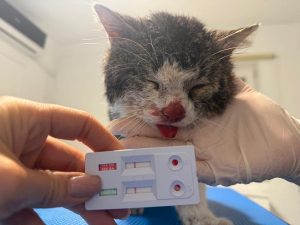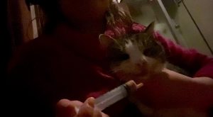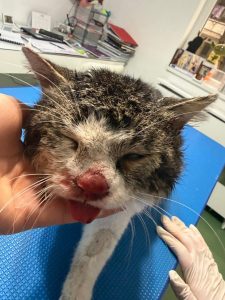 Im Januar fanden die lieben Tierschützerinnen in Barlad einen Kater, der von einem Auto erfasst wurde. Selbstverständlich haben sie sofort gehandelt. Nadia hat ihn zu der lieben Flori gebracht, welche Tierärztin vor Ort ist. Dort stellte sich heraus, dass er Brüche im Kiefer hat und nicht selbstständig fressen kann. Liebevoll kümmert sich Nadia seitdem um ihn, nachdem seine Wunden versorgt wurden. Anfangs konnte er nur mit einer Spritze gefüttert werden – in den Kommentaren seht ihr Videos, als er endlich anfing selbstständig zu fressen.