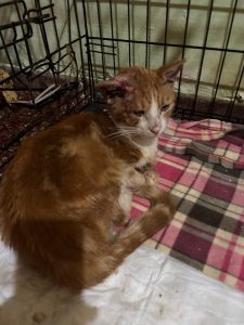 Bereits als wir im September zu Besuch waren fiel uns ein Kater auf, da er scheinbar eine Allergie oder Erkrankung an der Haut hat. Vor kurzem konnte Elena ihn einfangen und zum Tierarzt bringen. Dort wird er nun versorgt. Leider ist er nicht sehr kooperativ. Trotzdem haben sie es geschafft, die offenen Stellen an seinen Ohren zu versorgen. Damit die Wunden sauber bleiben und heilen muss er für die Therapie beim Tierarzt bleiben, was natürlich zusätzliche Kosten verursacht. Mittlerweile sind schon Kosten von 210€ angefallen – Tendenz steigend.